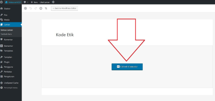 Setelah terbuka halaman baru, klik pada tombol “Edit with Elementor”.