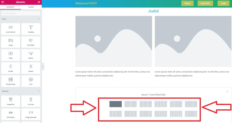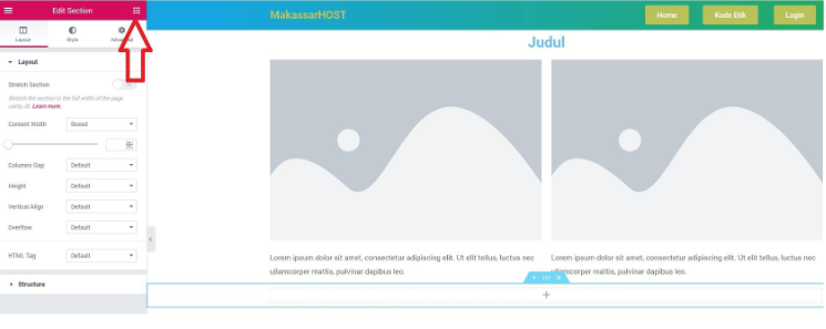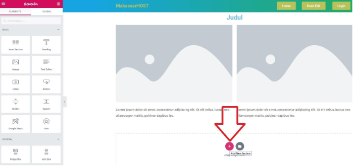 Arahkan kursor ke arah tanda panah di dalam lingkaran seperti ditunjukkan pada gambar (Add New Section), lalu klik pada tanda panah tersebut untuk mengatur jumlah kolom yang diinginkan.