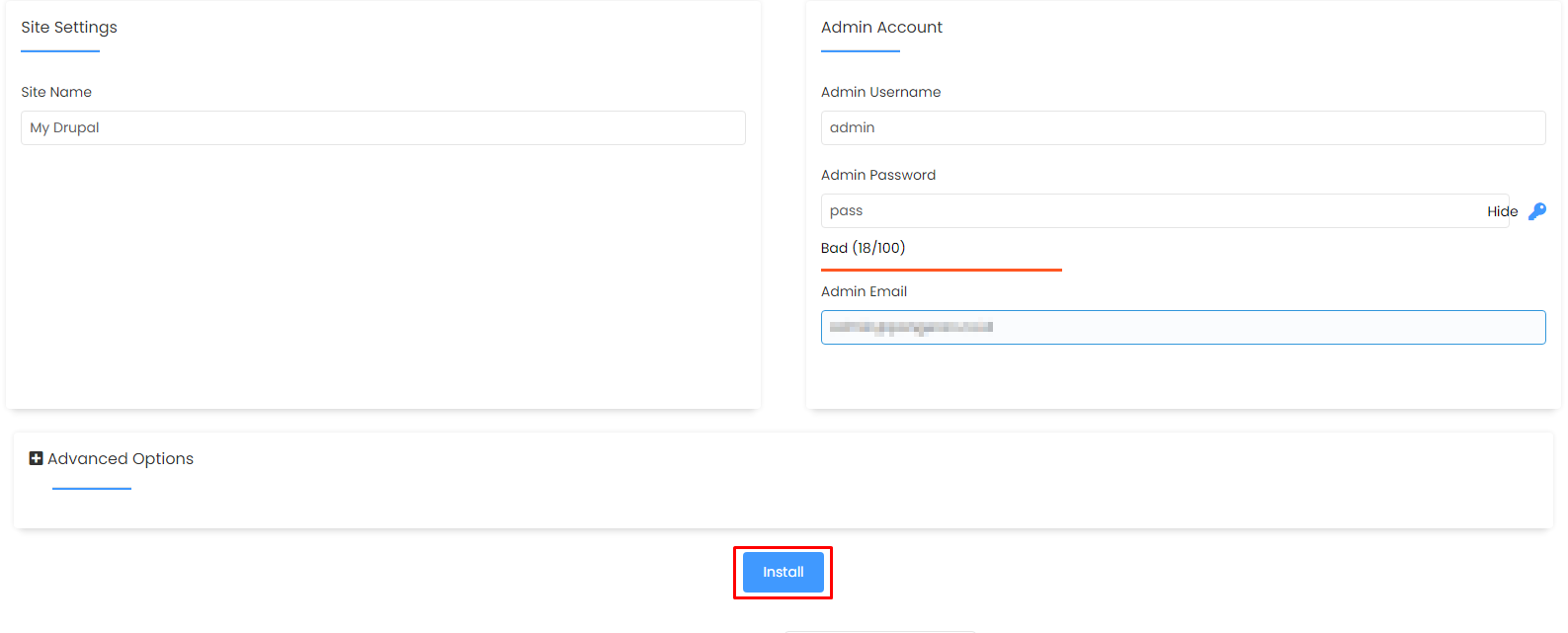 4. Isi Site Name dan tab Admin Account.