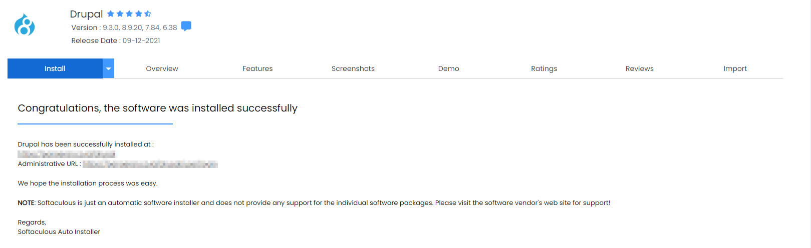 - Buka halaman home Softaculous, lalu pada tab pencarian ketik Drupal.